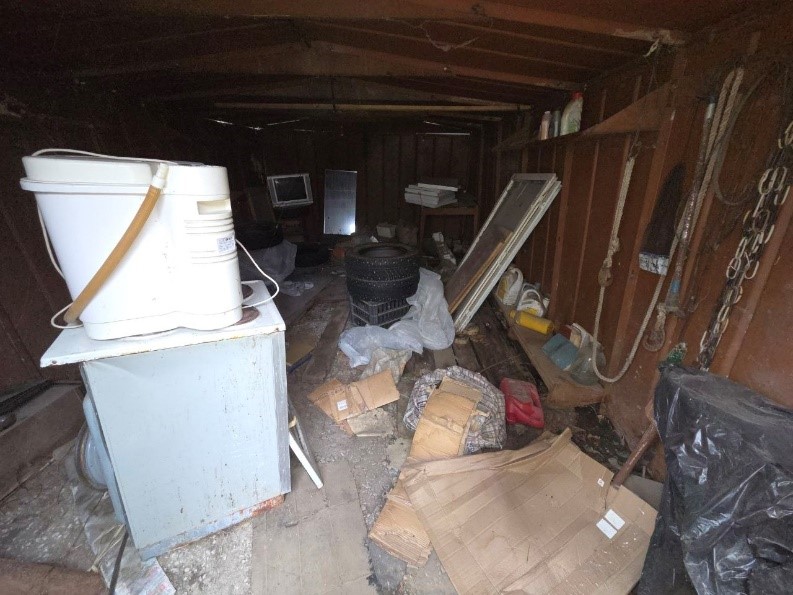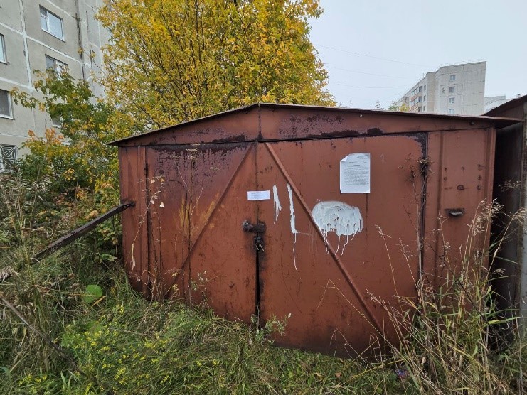 Краткая характеристика имущества: объект представляет собой металлический гараж коричневого цвета (с признаками коррозии), закрыт на внешний замок, габаритные размеры: (ДхШхВ) 4 х 3 х 2,1 м., с двускатной кровлей, входными воротами, заваренными электросваркой.