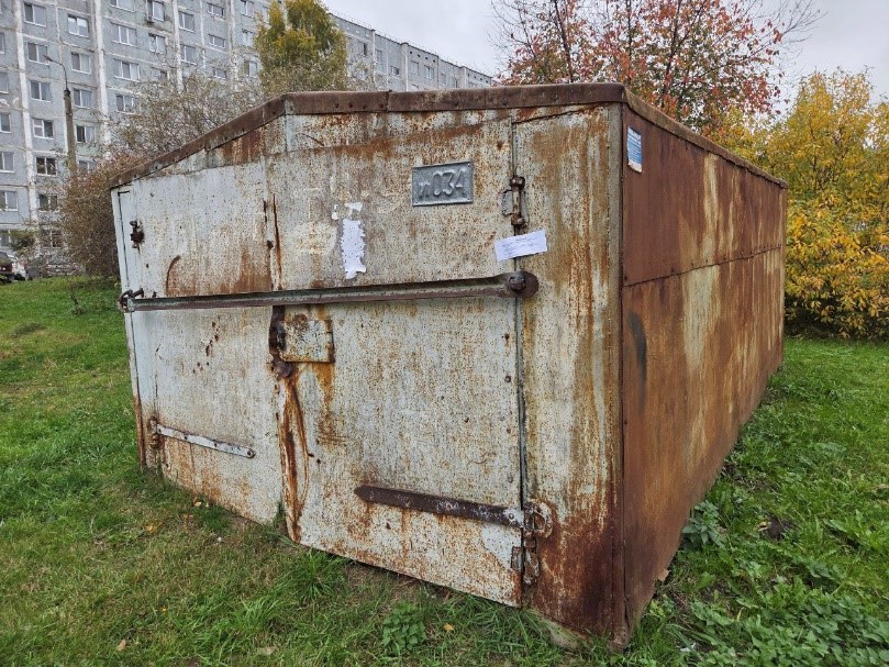 Краткая характеристика имущества: объект представляет собой металлический гараж серого цвета (с признаками коррозии), гаражный номер 034, габаритные размеры: (ДхШхВ) 4 х 3 х 2,1 м., с двускатной кровлей, входными воротами, заваренными электросваркой.