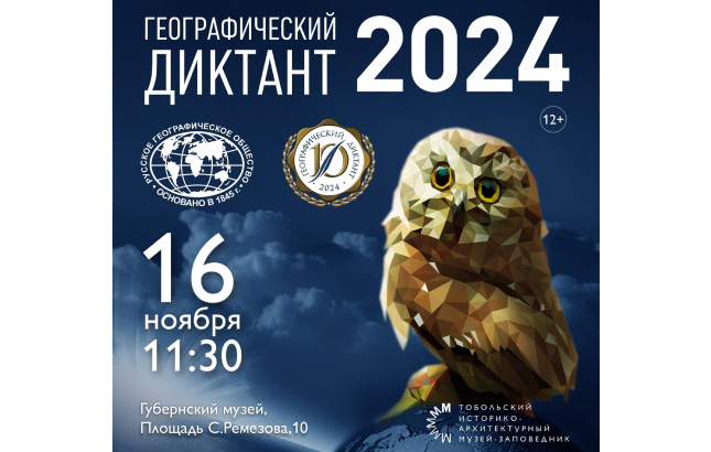 16 ноября в 11:30 приглашаем всех желающих принять участие в Географическом диктанте, который состоится в очном формате в Губернском музее по адресу: площадь С. Ремезова, 10.