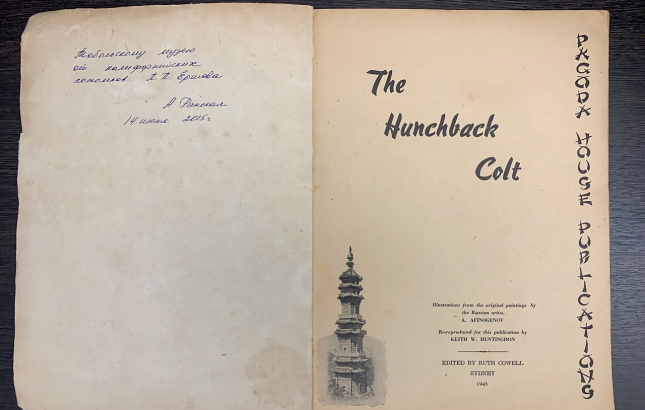 Альбом посвящен зарубежным изданиям главной сказки Сибири. В нем также опубликованы копии материалов из фондов Тобольского музея-заповедника. Есть и уникальное издание «Конька-Горбунка», переданное Научной библиотеке в 2015 году калифорнийскими родственниками прославленного литератора.