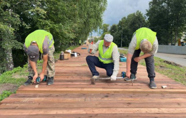 В настоящее время ведутся земляные работы и озеленение территории. С каждым днем красивая дорожка из лиственницы, предназначенная для прогулок по валу, прибавляет в метраже.