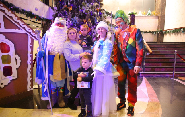 Холл театра стал площадкой для проведения развлекательной программы со сказочными героями и главными волшебниками: Дедом Морозом и Снегурочкой. Здесь работали фотозоны, а детям выдавали сладкие подарки.
