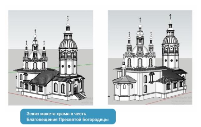 В рамках этой работы при поддержке СИБУРа был подготовлен эскиз макета храма в честь Благовещения Пресвятой Богородицы, он станет основой для создания бронзового макета высотой 1,4 м. Его установка намечена на август текущего года.