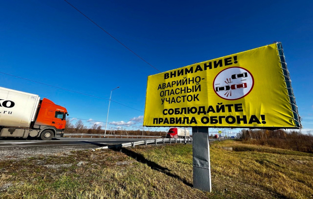 Ярко-желтые баннеры привлекают внимание водителей и напоминают о соблюдении правил обгона.