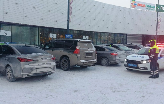 14 водителей оштрафованы за парковку на местах для инвалидов у ТЦ "Жемчужина Сибири" и "Евразия"!