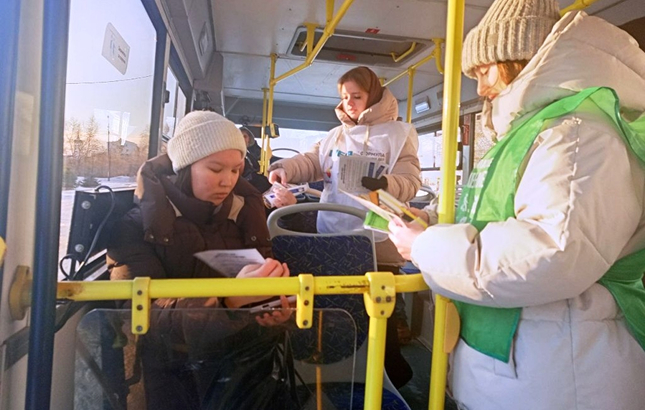 В Тобольске прошла акция "Пассажир", во время которой сотрудники Госавтоинспекции вместе со студентами Тобольского медицинского колледжа им. В. Солдатова и представителями Тобольского ПАТП напомнили пассажирам автобусов о простых, но важных правилах, которые помогут избежать травм в общественном транспорте.