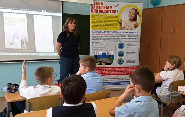 Автоинспекторы провели познавательное занятие с четвероклассниками, где ребята узнали о важности использования световозвращающих элементов, а также повторили основные правила дорожного движения для пешеходов и пассажиров.