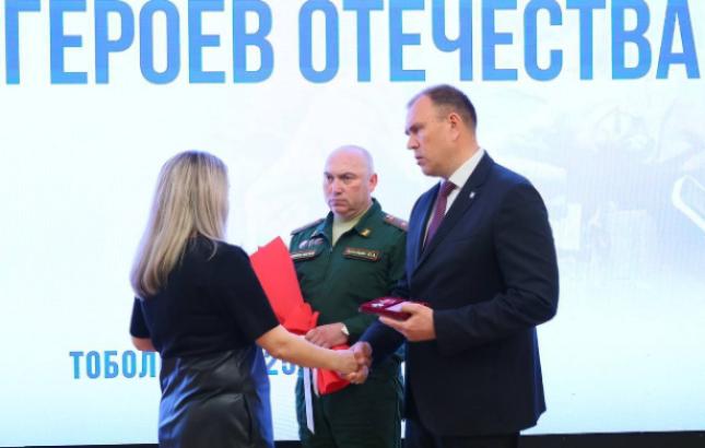 Глава города Петр Вагин с военным комиссаром города Тобольска и Тобольского района Юрием Золотаревым передали награды семьям тоболяков, погибших при исполнении воинского долга.