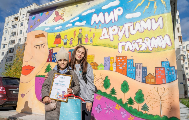 Необычный стрит-арт украсил стену трансформаторной подстанции в 7а микрорайне. И это не просто рисунок, а картина маленькой особенной художницы, занявшей 1 место в конкурсе детских рисунков в рамках волонтерского проекта «Мир другими глазами», реализуемого при поддержке программы социальных инвестиций компании СИБУР «Формула хороших дел».