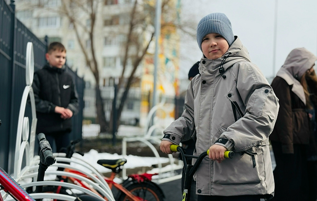Теперь у ребят, которые приезжают на занятия на велосипедах и самокатах, есть свое надежное место. Подарок школе сделал «Совет надежных отцов» г. Тобольска.
