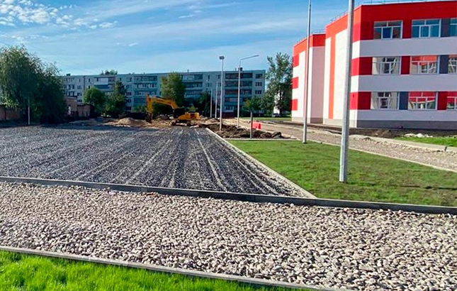 Работы по капитальному ремонту средней школы №16 имени В.П. Неймышева в Тобольске в завершающей стадии. Сейчас подрядчик выполняет работы по асфальтированию спортивных беговых площадок и тротуаров, занимается укладкой брусчатки.
