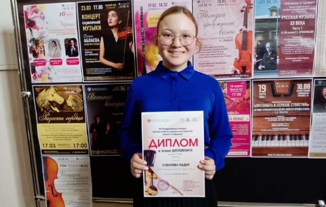 Учащаяся Детской школы искусств имени А.А. Алябьева Надия Усманова представила наш город на престижном VIII Международном конкурсе исполнителей на народных инструментах имени С.С. Сайдашева, который проходил в Казани с 9 по 13 марта.