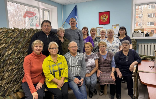 Инициативные жители микрорайона Иртышский, объединенные в волонтерскую группу «Оберег», плетут камуфляжные сети, готовят бойцам помощь с родной земли.