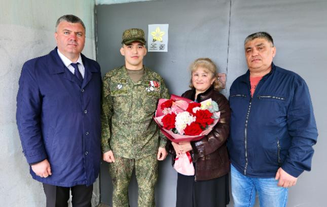 В Тобольске состоялось торжественное открытие "Звезды Героя", посвященной участнику специальной военной операции Радику Юрисовичу Айтнякову. Золотая звезда, символизирующая мужество и отвагу, была установлена на подъезде дома, где проживают его родители.