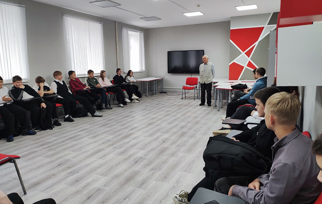 Владимир Александрович – настоящий патриот, чья жизнь является примером служения обществу. Он рассказал школьникам о своей семье, ее традициях и личном опыте, участии в патриотических мероприятиях, помощи ветеранам и участникам СВО. Главной темой беседы стала личная ответственность каждого гражданина перед страной, воспитание любви к Родине и передача традиций из поколения в поколение.