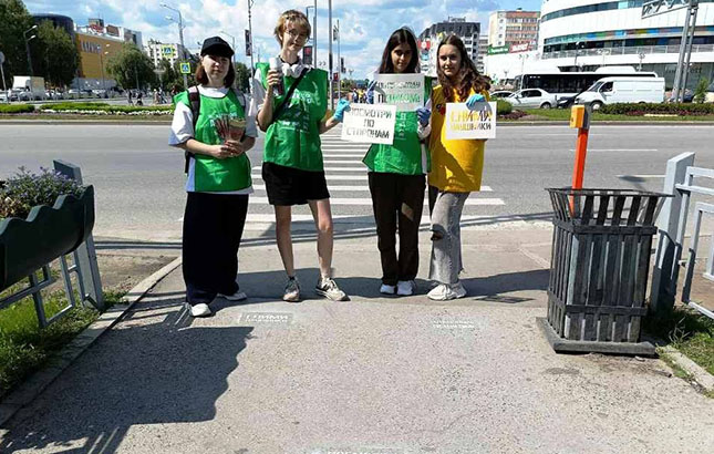 Теперь жителям и гостям города о правилах безопасного поведения на дороге напоминают надписи на асфальте: «Снимите наушники», «По переходу - пешком», «Посмотри по сторонам».