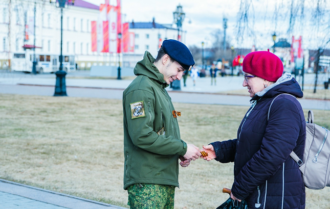 С 24 апреля в Тобольске стартовала Всероссийская акция «Георгиевская ленточка». Более 10 тысяч лент — символов доблести, мужества и бессмертного подвига русских солдат — подарят тоболякам волонтёры и активисты.