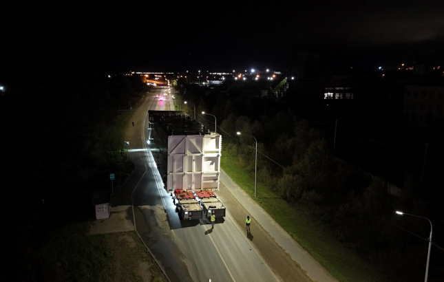 Первая единица крупнотоннажного оборудования для нового комплекса дегидрирования пропана и производства полипропилена (ДГП-2) доставлена из промышленного порта «ЗапСибНефтехима» г. Тобольска до строительной площадки проекта. Это холодный блок, отвечающий в производстве за подготовку сырьевого потока и выделение водорода из газовой смеси. За октябрь-декабрь 2024 года будет завезено всё крупногабаритное и тяжелое оборудование проекта – это более 130 единиц. Доставка из промпорта к месту разгрузки осуществляется при помощи самоходных модульных транспортеров. За время движения оборудование преодолевает 21 км. Транспортировка идет преимущественно в ночное время.